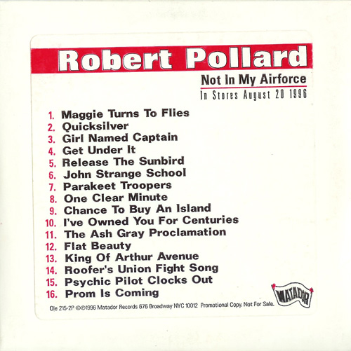 It’s also interesting to note that the final six tracks on Not in My Airforce (starting with “Party”) don’t appear on early Matador promo copies. In fact, they were intended to comprise their own EP, and were tacked onto the album at the last minute. That means “Prom is Coming” was the original closer, and “Psychic Pilot” was the penultimate track.